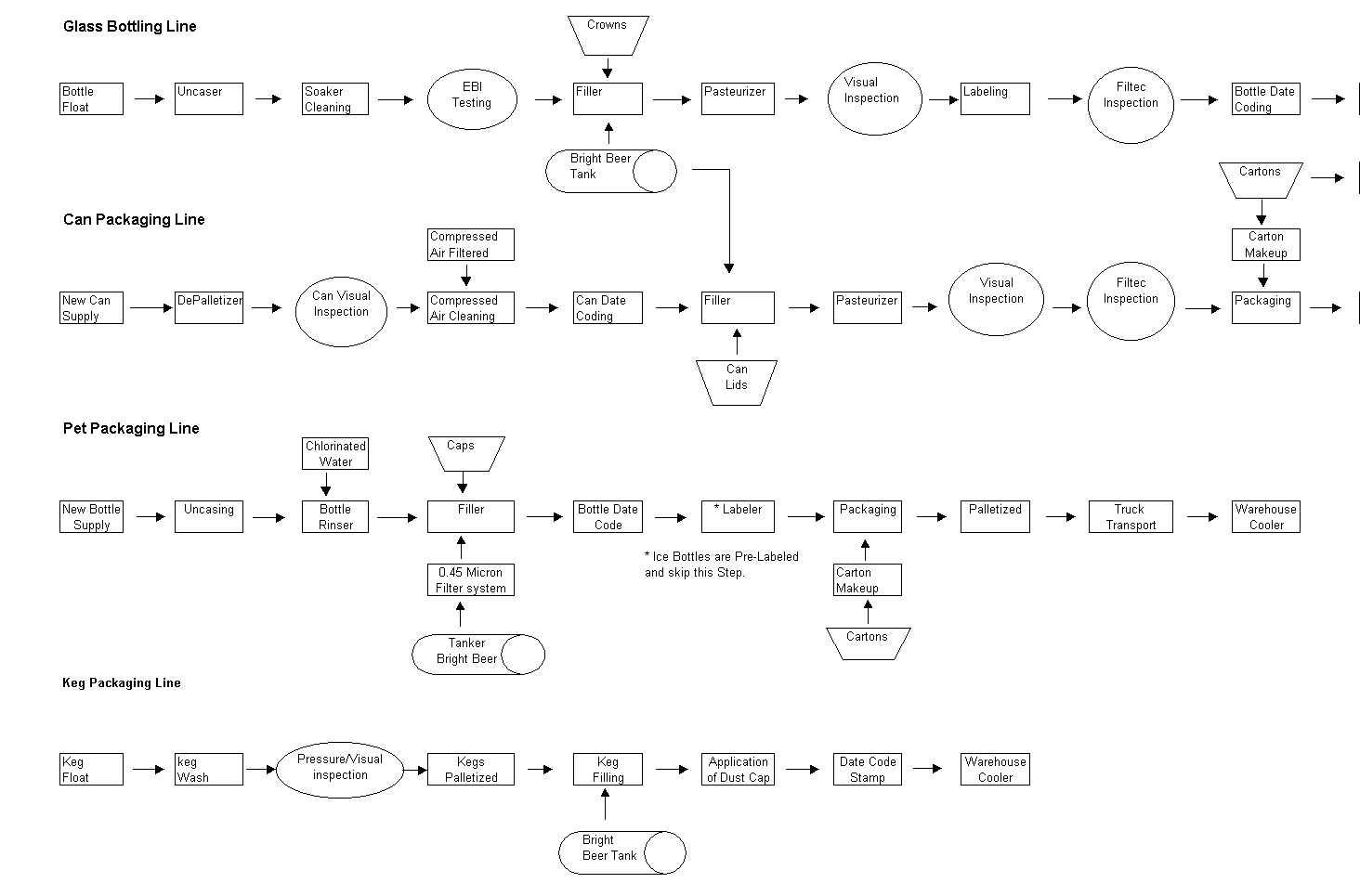 Now that we have completed the brewing process, we pump the finished beer to the bottleshop and begin the packaging process (See fig.). It has taken approximately 24 days to reach this point in the process.